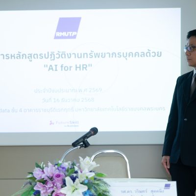 และใช้ในการปรับปรุงกระบวนการทำงานด้าน HR เช่น การวิเคราะห์โครงสร้างองค์กร การสรรหาบุคลากร การพัฒนาสมรรถนะการวางแผนพัฒนาบุคลากรการประเมิน Performance ฯลฯ ด้วย AI แก่ผู้เข้าอบรมโดยมีกลุ่มเป้าหมายคือบุคลากรที่ปฏิบัติงานด้านบุคคลของมหาวิทยาลัยเทคโนโลยีราชมงคลพระนคร จำนวน 50 คน